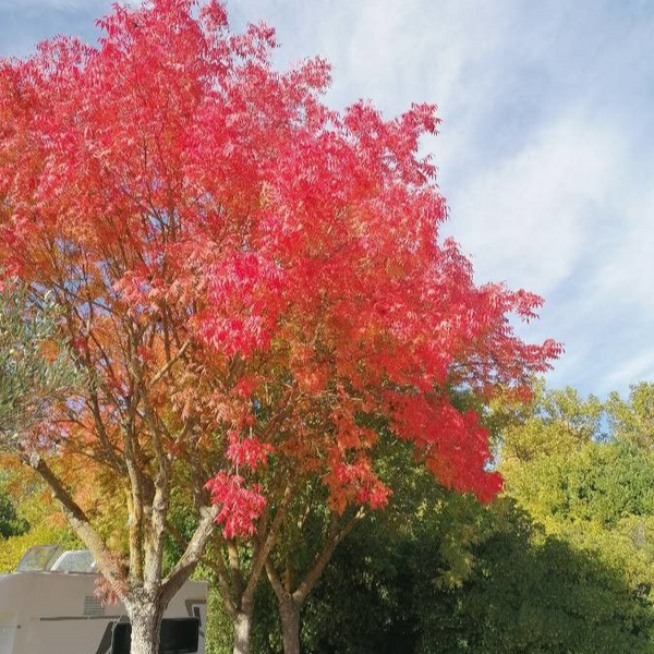 Feuilles caduques vert vif, prenant des couleurs d’automne jaune ou orange.