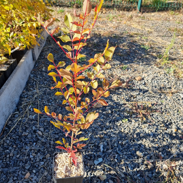 Inflorescences verdâtre en avril-mai, suivies de grappes rouge, sur les pieds femelles, en été et automne (Issus de semis, nos plants ne peuvent être sexué).