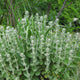 Feuilles persistantes laineuses, gris argenté, devenant presque blanches en été. Port en boule dense.