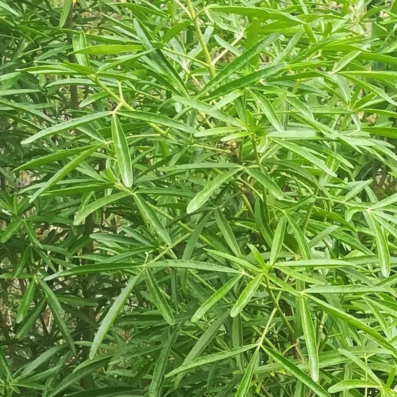 Feuilles persistantes aromatiques à folioles linéaires vert foncé brillant. Port en boule dense.