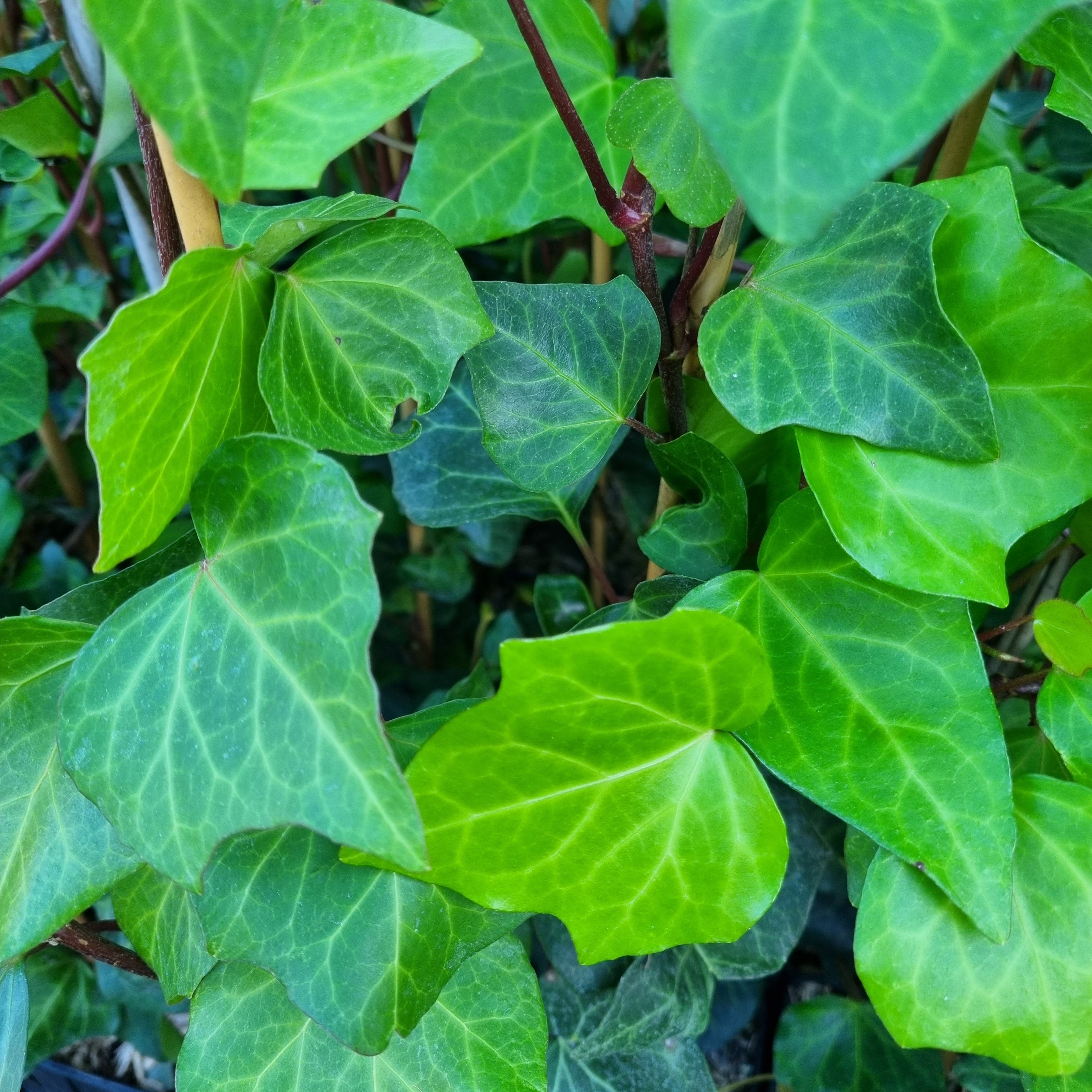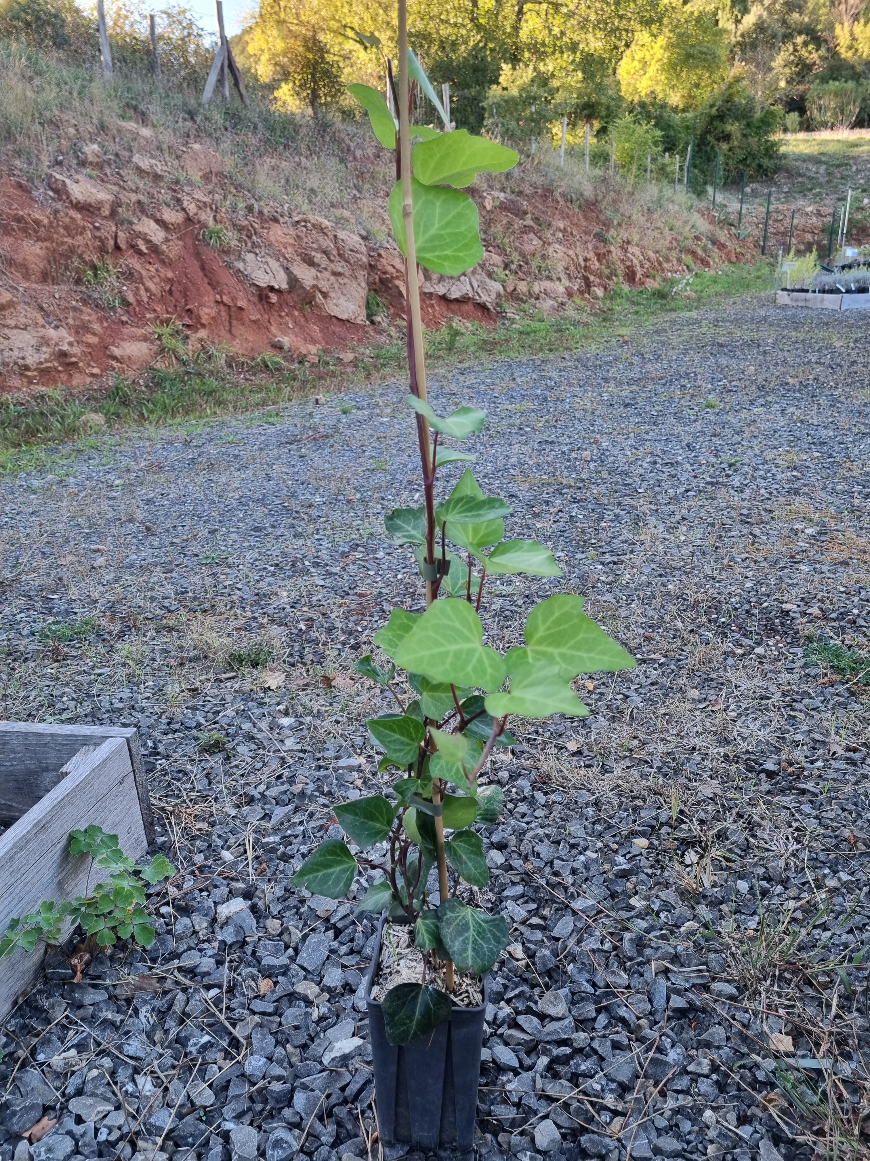 Grandes feuilles vertes, persistantes. Les tiges s’accrochent toutes seules grâce à ses racines crampons.