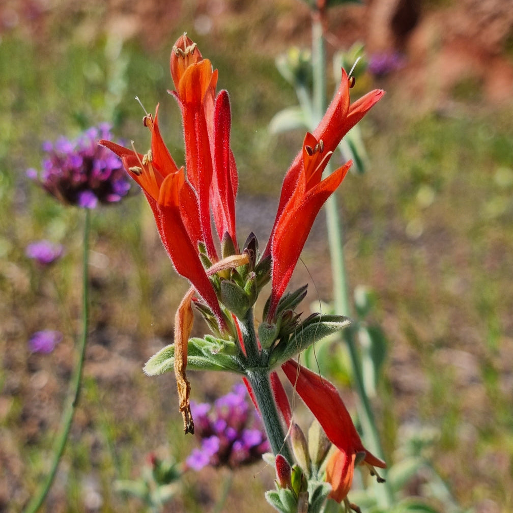 Abondantes fleurs tubulaire rouge orangé de juin à septembre.