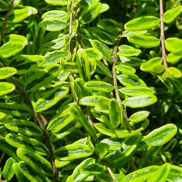 Petites feuilles persistante vert clair et vert foncé au centre, brillantes. Port compact, supporte bien la taille.